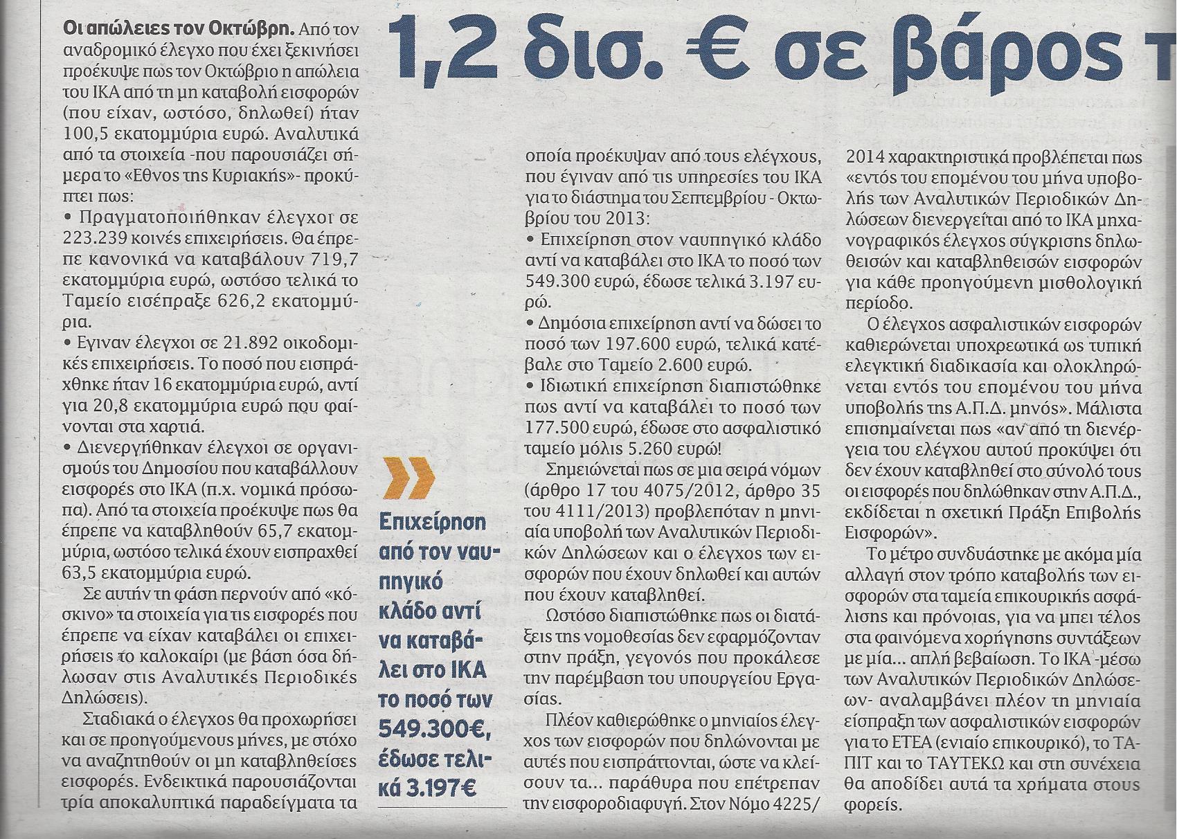 «Κόλπο γκρόσο» είχαν στήσει επιχειρήσεις εις βάρος του ΙΚΑ, καθώς άλλα ποσά δήλωναν στα επίσημα έγγραφα και άλλα τελικά κατέβαλλαν στο Ταμείο. Οι πρώτοι έλεγχοι δείχνουν πως η ετήσια απώλεια φτάνει τα 1,2 δισεκατομμύρια ευρώ, ποσό που θα μπορούσε να καλύψει τη «μαύρη τρύπα» του μεγαλύτερου ασφαλιστικού φορέα της χώρας.