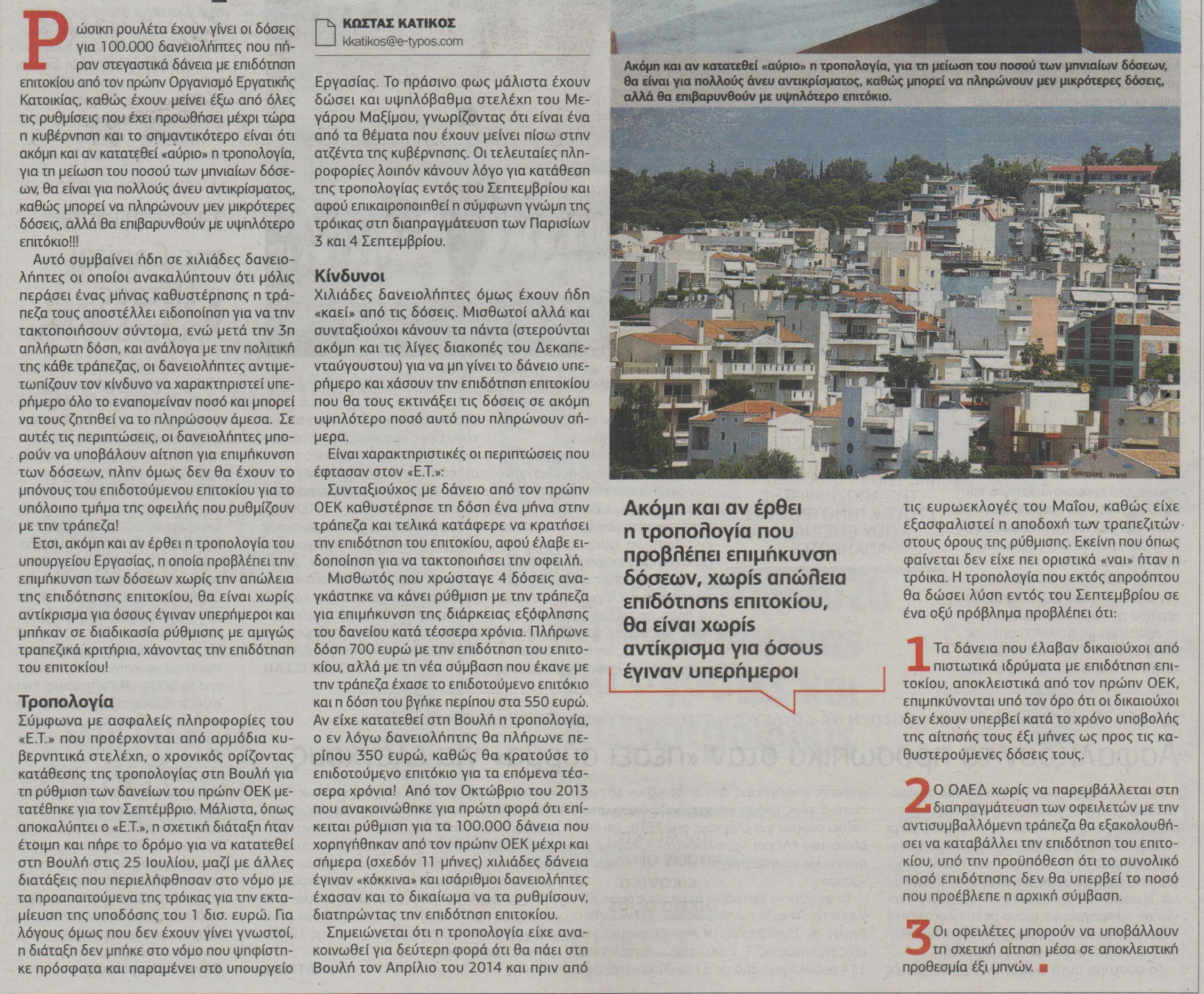 Ρώσικη ρουλέτα έχουν γίνει οι δόσεις για 100.000 δανειολήπτες που πήραν στεγαστικά δάνεια με επιδότηση επιτοκίου από τον πρώην Οργανισμό Εργατικής Κατοικίας, καθώς έχουν μείνει έξω από όλες τις ρυθμίσεις που έχει προωθήσει μέχρι τώρα η κυβέρνηση και το σημαντικότερο είναι ότι ακόμη και αν κατατεθεί «αύριο» η τροπολογία, για τη μείωση του ποσού των μηνιαίων δόσεων, θα είναι για πολλούς άνευ αντικρίσματος, καθώς μπορεί να πληρώσουν με μικρότερες δόσεις, αλλά θα επιβαρυνθούν με υψηλότερο επιτόκιο!