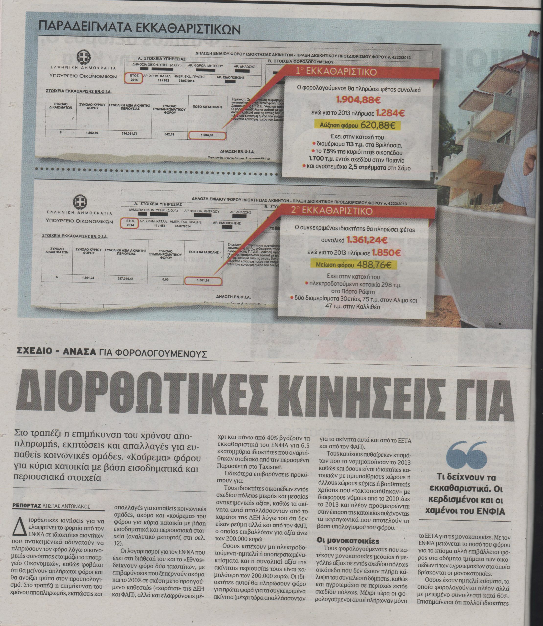 Σχέδιο-ανάσα για τον φόρο ακινήτων