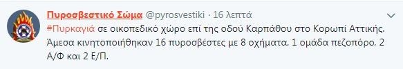 Το οικόπεδο βρίσκεται στην οδό Καρπάθου στο Κορωπί. Σύμφωνα με την πρώτη εκτίμηση δεν κινδυνεύουν σπίτια.