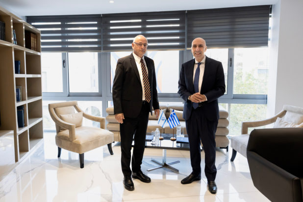 Τον Πρέσβη του Ισραήλ στην Αθήνα, κ. Noam Katz, υποδέχτηκε στο Εμπορικό και Βιομηχανικό Επιμελητήριο Αθηνών ο Πρόεδρος του ΕΒΕΑ, κ. Γιάννης Μπρατάκος.