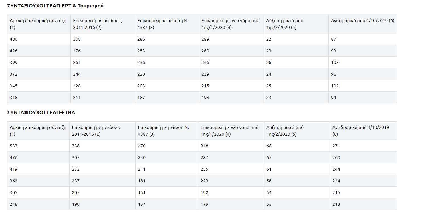 Μικρότερες αυξήσεις θα πάρουν οι συνταξιούχοι όλων των άλλων επικουρικών ταμείων, γιατί είχαν και μικρότερες μειώσεις (κάτω από 20%) στις επικουρικές τους μετά τον Ιούνιο του 2016.