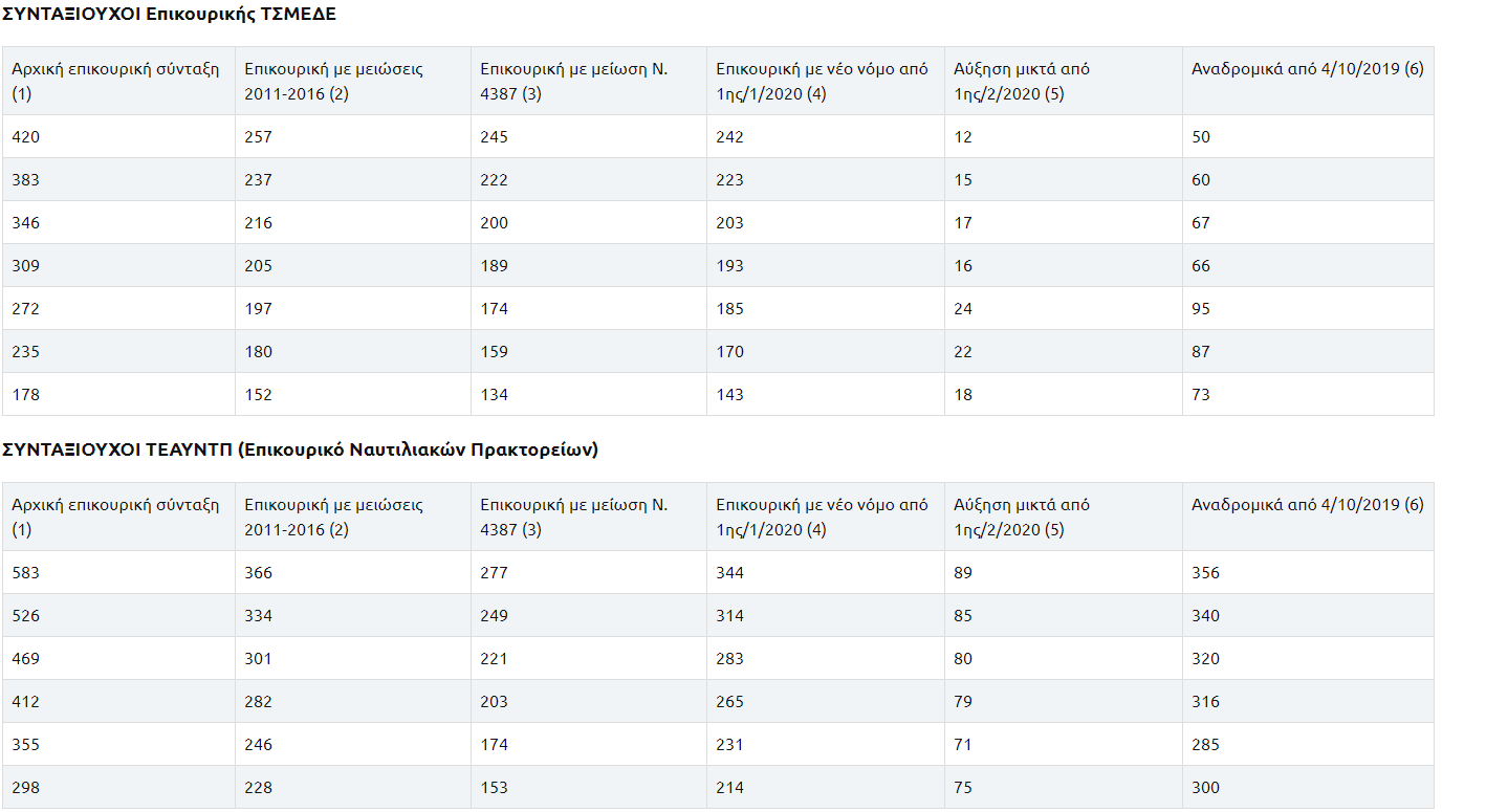 4.Επικουρική με την αύξηση του νέου νόμου από 1ης/1/2020 (με κράτηση ασθενείας 6% και προ φόρου)