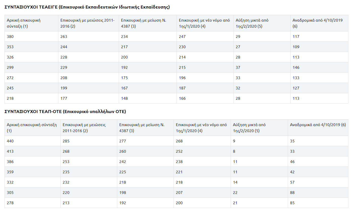 1. Επικουρικές ΤΕΑΔ: Συνταξιούχος με αρχική επικουρική 655 ευρώ παίρνει σήμερα 250 ευρώ μετά τη μείωση του νόμου Κατρούγκαλου. Θα έχει αύξηση 130 ευρώ το μήνα με την επικουρική στα 357 ευρώ από τον Φεβρουάριο του 2020 (προ φόρου) και αναδρομικά τετραμήνου 520 ευρώ.