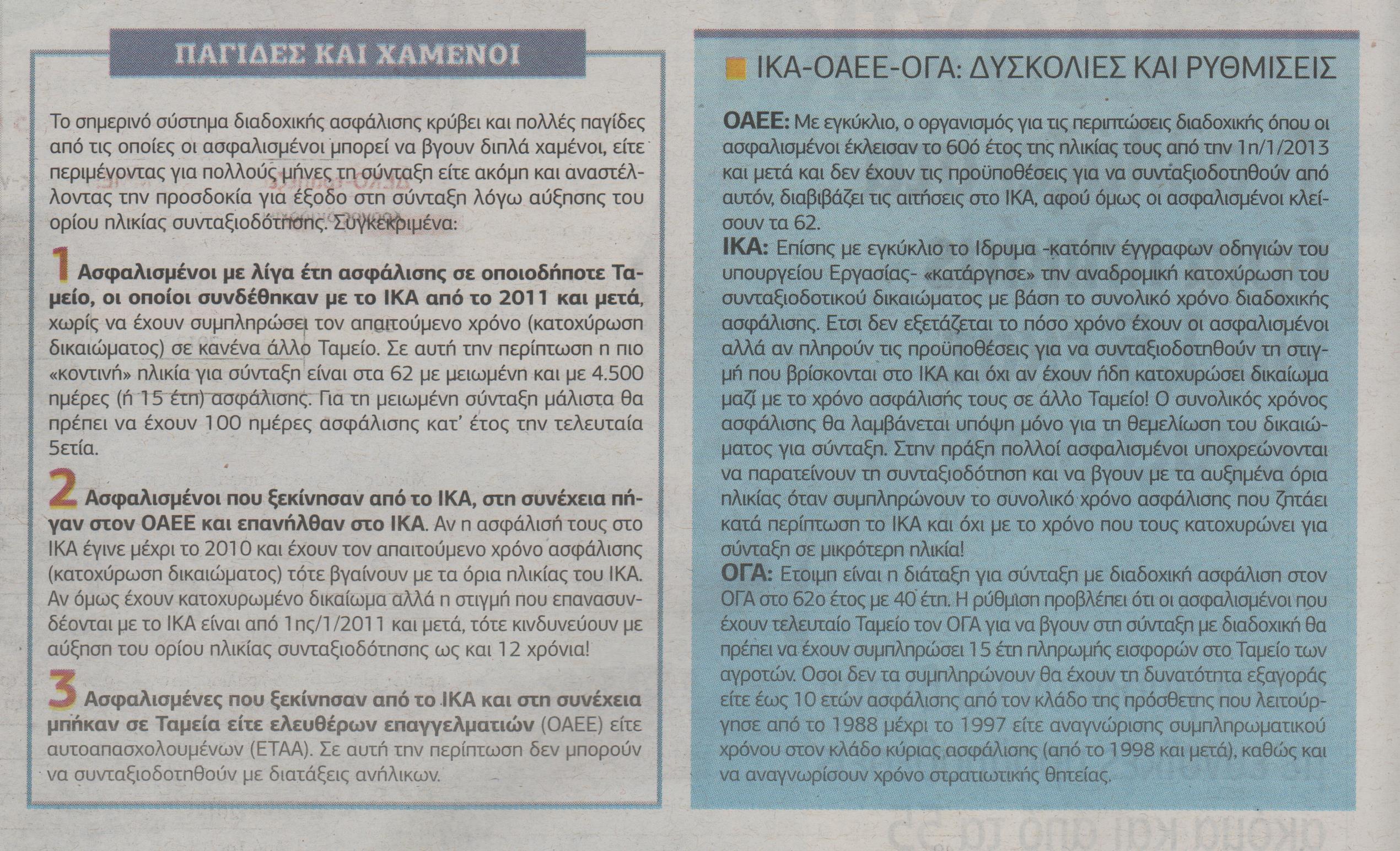 Συντάξεις από τα 55 με διαδοχική ασφάλιση