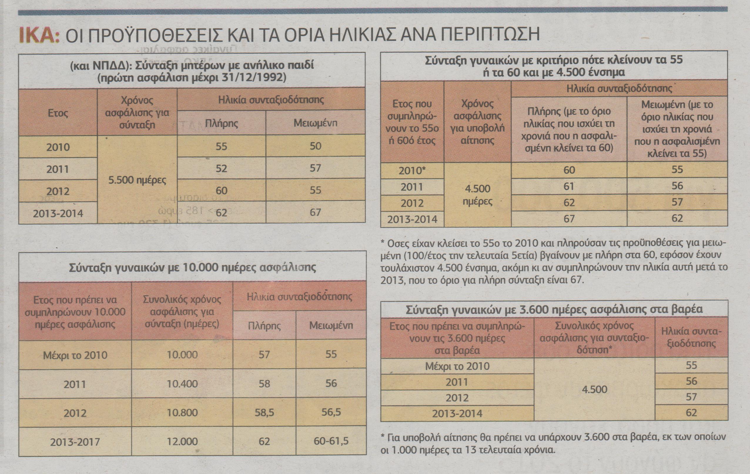 Σύνταξη από τα 52 για τις γυναίκες-Αναλυτικοί πίνακες