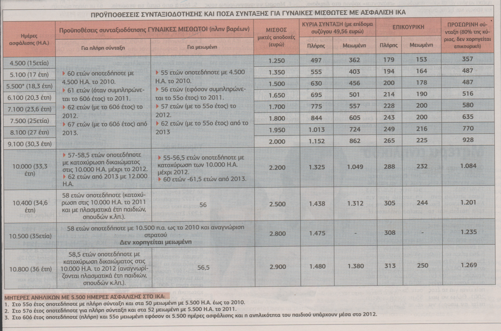 - Με 15ετία, στο ΙΚΑ για σύνταξη από τα 55 ως τα 60. Αφορά όσες γυναίκες ήταν 55 ετών το 2010. Για τους άντρες ισχύει η μειωμένη στα 60 και πλήρης στα 65 εφόσον είχαν 4.500 ημέρες ασφάλισης ως το 2012 και υπέβαλαν αίτηση μέχρι 31/12/2012. Στην κατηγορία αυτή ανήκουν πάνω από 150.000 ασφαλισμένοι.