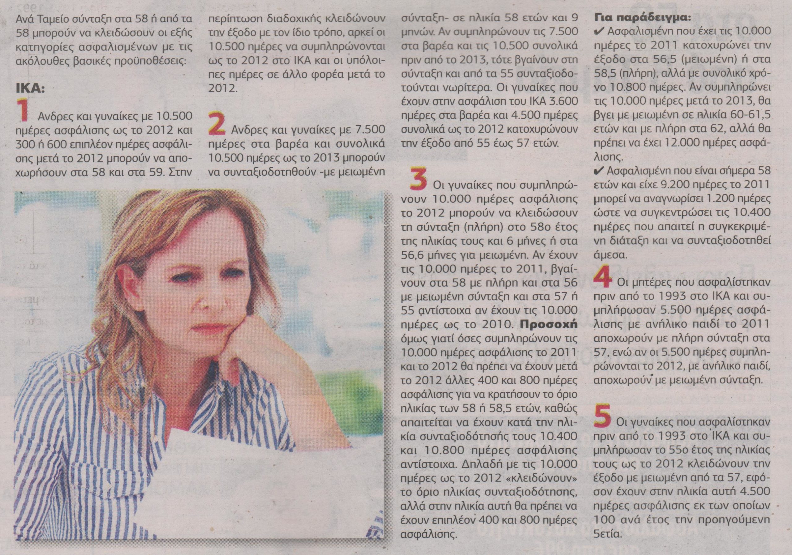 Ευνοϊκοί όροι για έξοδο των γυναικών στη σύνταξη