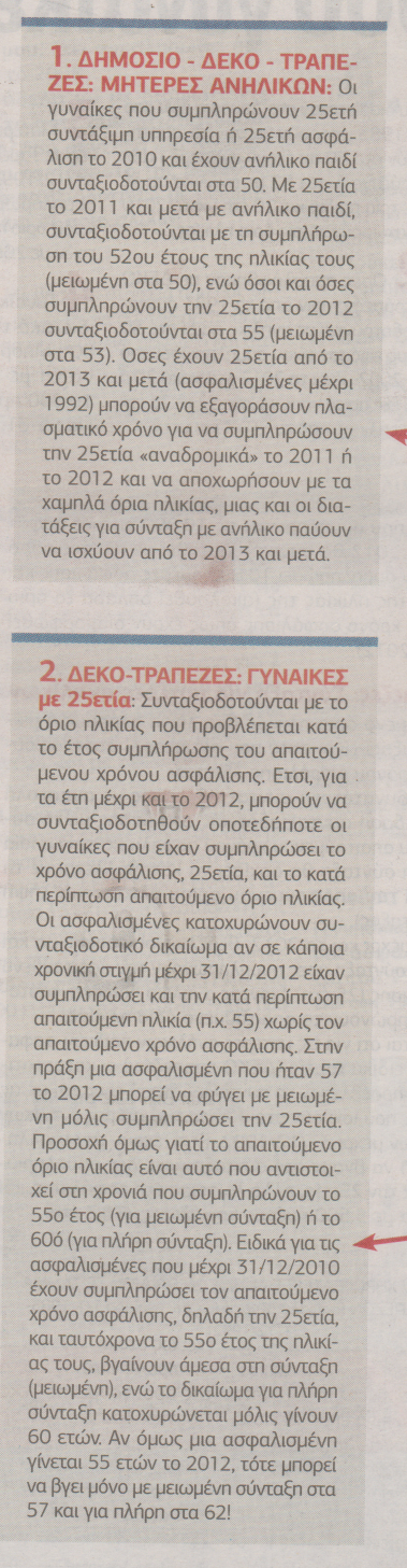 Σύνταξη στα 50 και τα 55 για 480.000 γυναίκες
