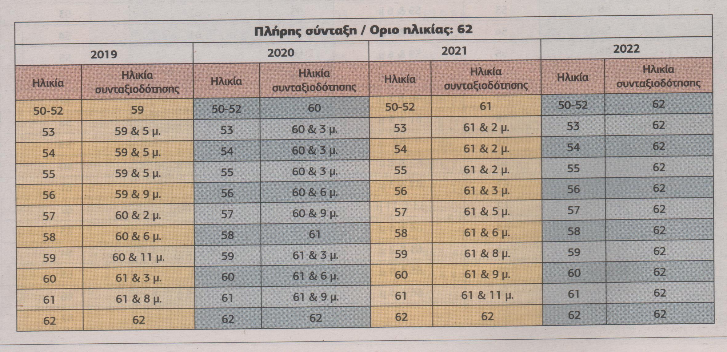 4.Όσοι συμπληρώνουν τα απαιτούμενα έτη ασφάλισης (π.χ. 25ετία σε Δημόσιο, ΔΕΚΟ, τράπεζες ή 10.500 ημέρες ασφάλισης στο ΙΚΑ, ή 35 έτη σε ΟΑΕΕ και ΕΤΑΑ) μετά την 1η/1/2013, συνταξιοδοτούνται είτε στα 62 με μειωμένη είτε στα 67 με πλήρη σύνταξη είτε με 40 χρόνια ασφάλισης στο 62ο έτος με πλήρη σύνταξη.
