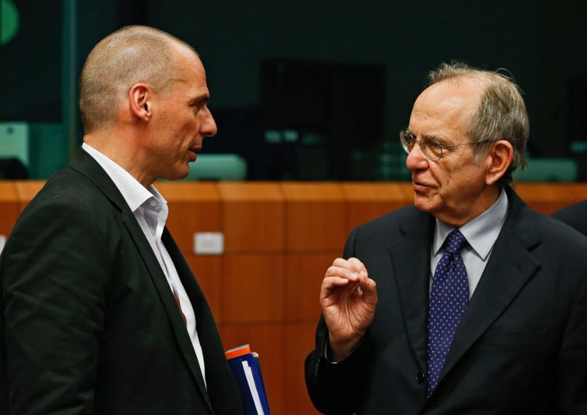 Με αρκετούς από τους ομόλογους του είχε τη δυνατότητα να συνομιλήσει ο Έλληνας υπουργός Οικονομικών, Γιάνης Βαρουφάκης πριν την έναρξη του Eurogroup στις Βρυξέλλες. Όπως φαίνεται και στις φωτογραφίες, ο Γιάνης Βαρουφάκης, είχε τετ α τετ με τον Βέλγο υπουργό Βαν Όβερτβελντ, τον Γάλλο Μισέλ Σαπέν, τον Πιέρ Κάρλο Πάντοαν, ενώ αντάλλαξε χαμόγελα και με τον Γερούν Ντάισελμπλουμ.