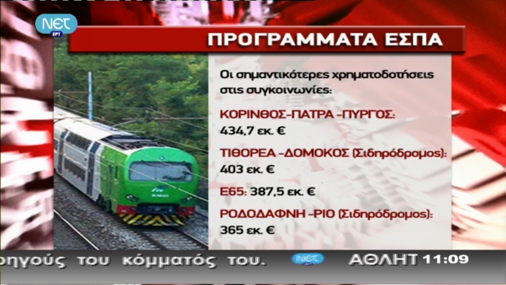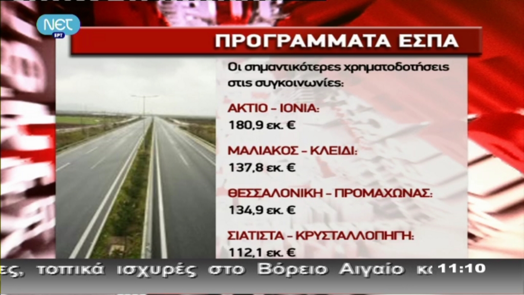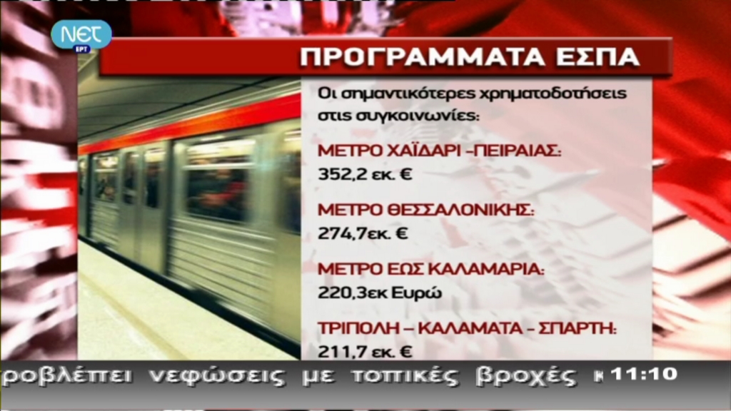 Κατατοπιστικές οι κάρτες της ΝΕΤ με τα συνολικά στοιχεία για τις χρηματοδοτήσεις στις συγκοινωνίες, μέσω ΕΣΠΑ.