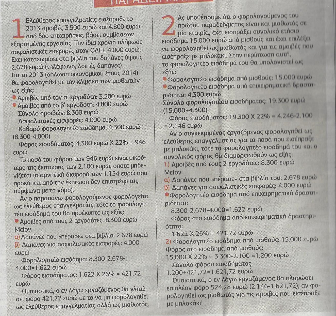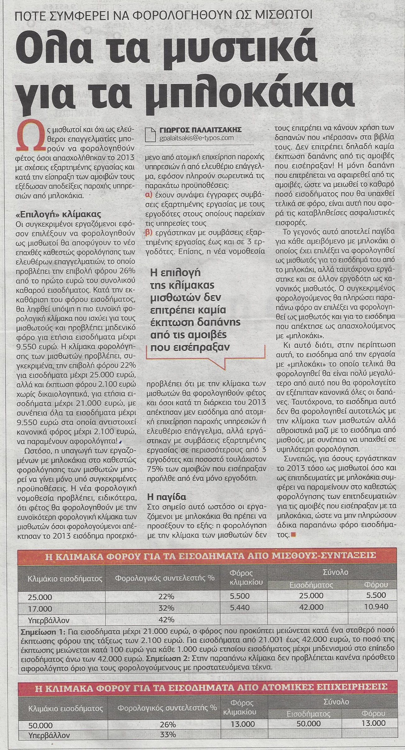 Ως μισθωτοί και όχι ως ελεύθεροι επαγγελματίες μπορούν να φορολογηθούν φέτος όσοι απασχολήθηκαν το 2013 με σχέσεις εξαρτημένης εργασίας και κατά την είσπραξη των αμοιβών τους εξέδωσαν αποδείξεις παροχής υπηρεσιών από μπλοκάκια.
