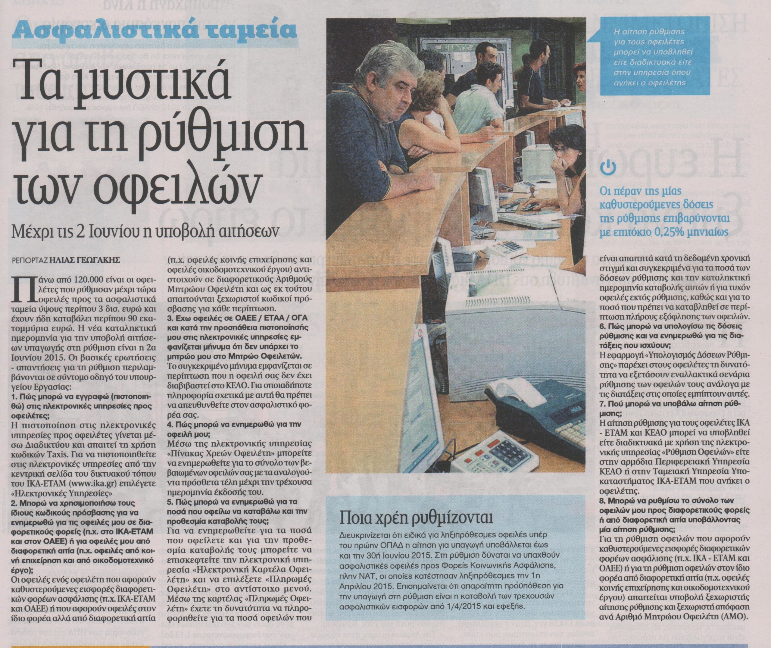 Η νέα καταληκτική ημερομηνία για την υποβολή αιτήσεων υπαγωγής στη ρύθμιση είναι η 2α Ιουνίου 2015.