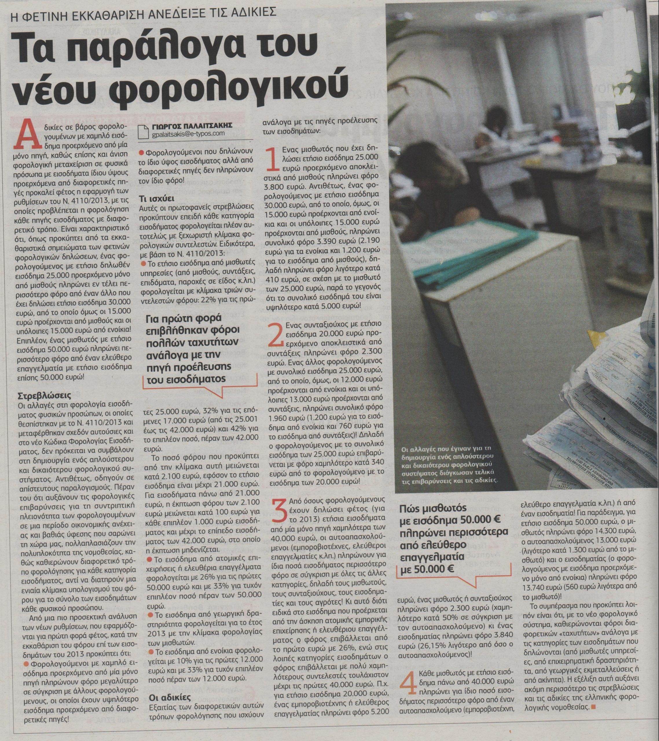 Αδικίες σε βάρος φορολογουμένων με χαμηλό εισόδημα προερχόμενο από μία μόνο πηγή, καθώς επίσης και άνιση φορολογική μεταχείριση σε φυσικά πρόσωπα με εισοδήματα ίδιου ύψους προερχόμενα από διαφορετικές πηγές προκαλεί φέτος η εφαρμογή των ρυθμίσεων του Ν. 4110/2013, με τις οποίες προβλέπεται η φορολόγηση κάθε πηγής εισοδήματος με διαφορετικό τρόπο.
