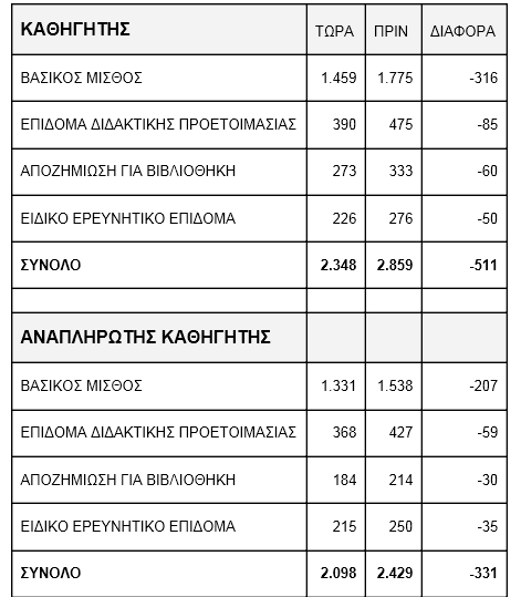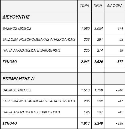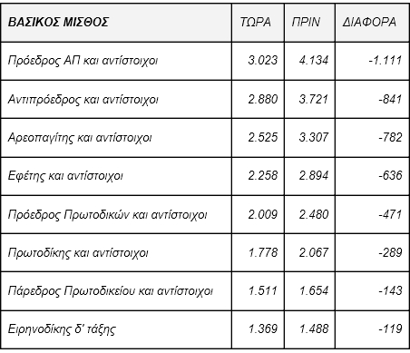 Αναλυτικά, οι απώλειες για γιατρούς, δικαστικούς, στρατιωτικούς και καθηγητές, εκτός από την πλήρη απώλεια των δώρων, έχουν ως εξής, σύμφωνα με τα βασικά επιδόματα: