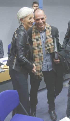 Με χαμόγελα και μία θερμή χειραψία υποδέχτηκε τον υπουργό Οικονομικών, Γιάνη Βαρουφάκη, η Κριστίν Λαγκάρντ, ενόψει του Eurogroup. Όπως φαίνεται και στις φωτογραφίες στην αίθουσα βρισκόταν και ο Γερούν Νταϊσελμπλουμ.