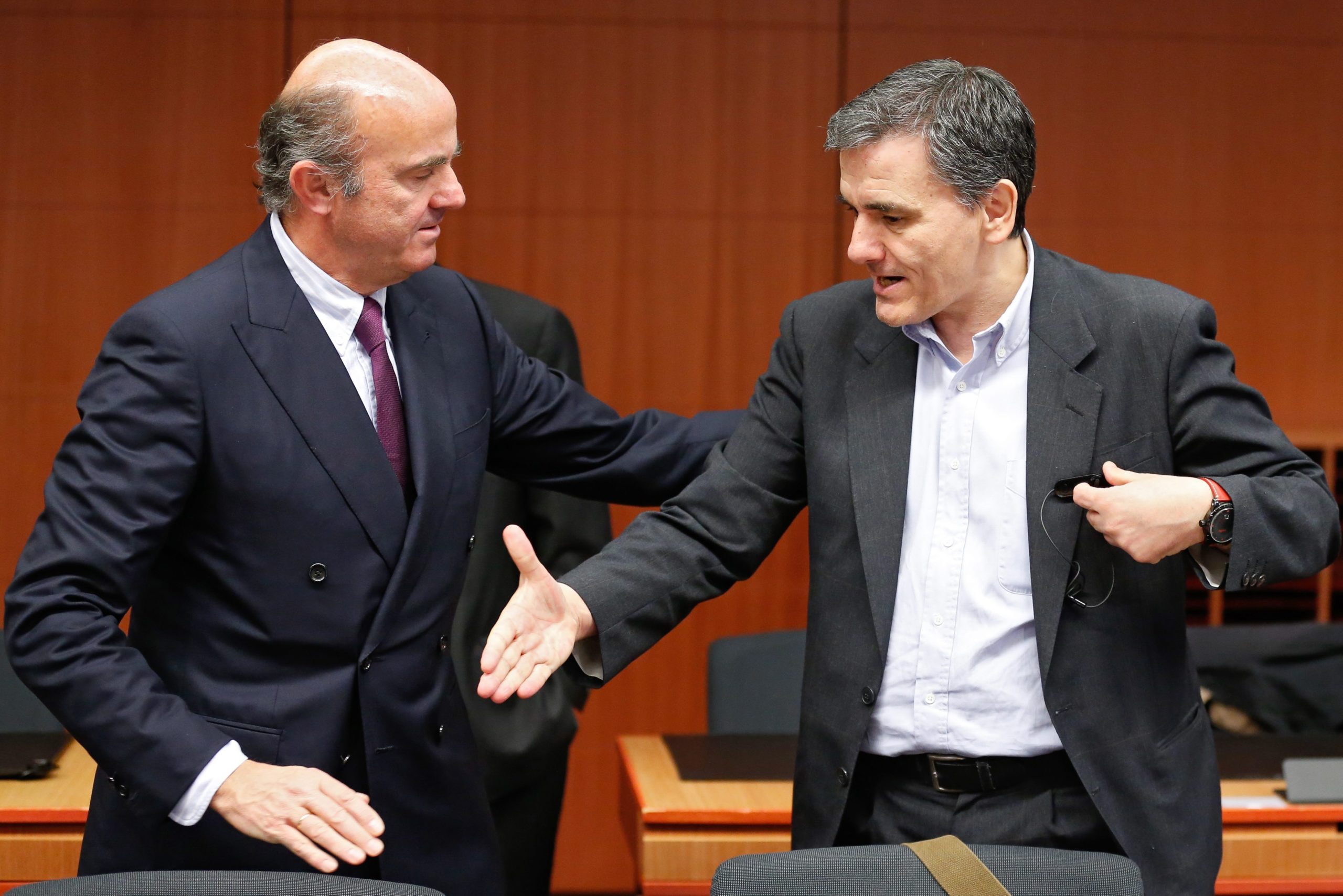 Ευδιάθετοι φαίνεται ότι ήταν οι υπουργοί Οικονομικών πριν από τη συνεδρίαση του Eurogroup. Ο Ευκλείδης Τσακαλώτος είχε, όπως θα δείτε στις φωτογραφίες που ακολουθούν, συνομιλία με τον Βόλφγκανγκ Σόιμπλε, τον Πιέρ Μοσκοβισί, τον Μισέλ Σαπέν και τον Λουίς Ντε Γκίντος, από την οποία δεν έλειψαν τα χαμόγελα.
