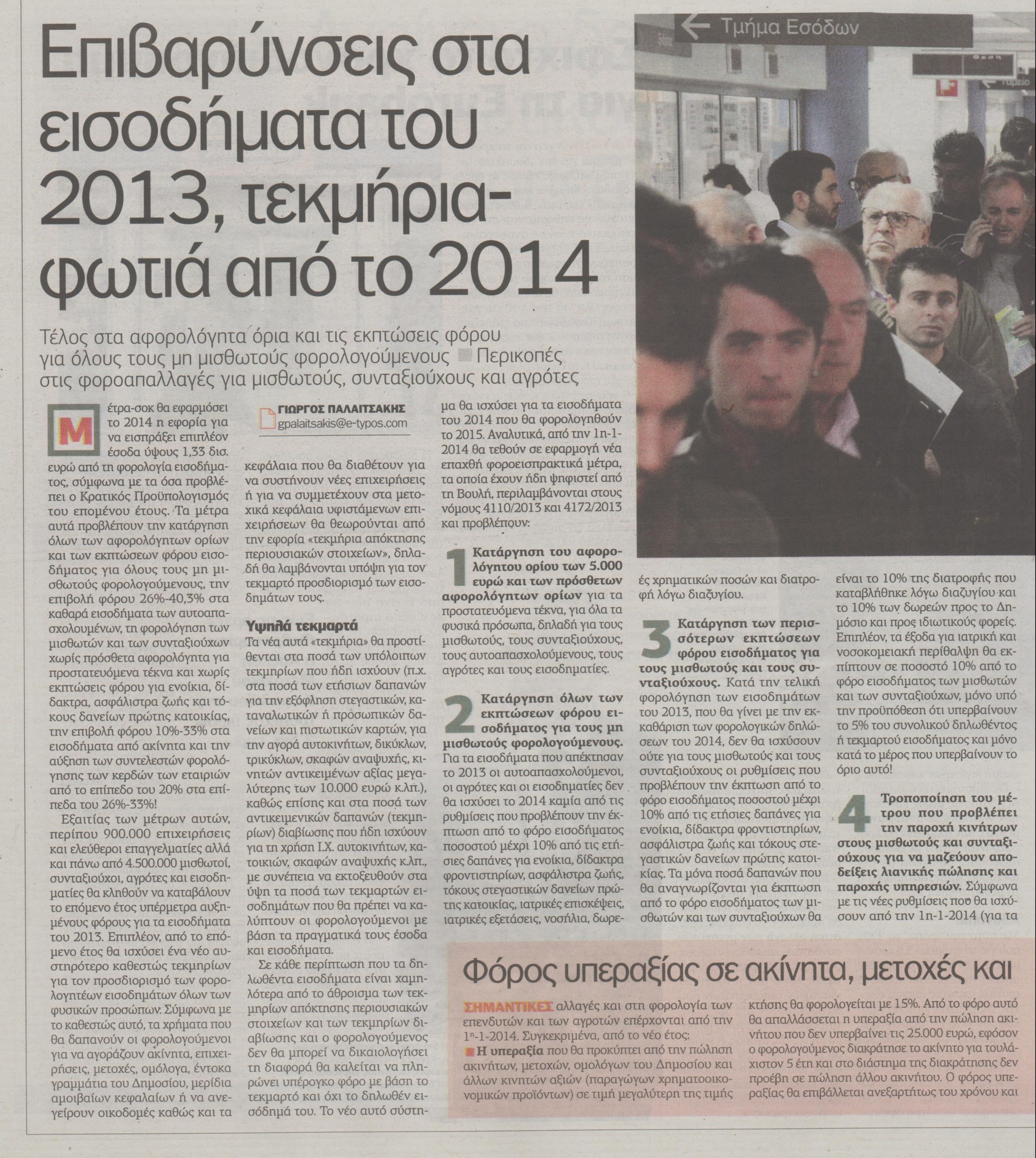 Εξαιτίας των μέτρων αυτών, περίπου 900.000 επιχειρήσεις και ελεύθεροι επαγγελματίες, αλλά και πάνω από 4.500.000 μισθωτοί, συνταξιούχοι, αγρότες και εισοδηματίες θα κληθούν να καταβάλουν το επόμενο έτος υπέρμετρα αυξημένους φόρους για τα εισοδήματα του 2013.
