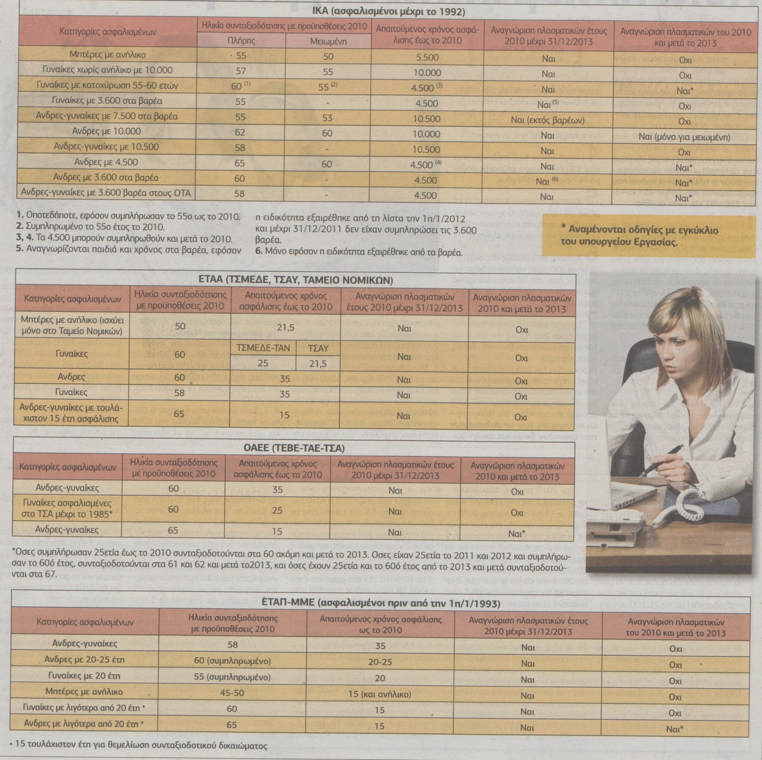 Τελευταία ευκαιρία για σύνταξη από τα 50 ή ακόμα και χωρίς όριο ηλικίας με τις προϋποθέσεις του 2010 αναγνωρίζοντας πλασματικά χρόνια ασφάλισης με αίτηση ως το τέλος του 2013 έχουν περίπου 450.000 ασφαλισμένοι του ΙΚΑ, των Ειδικών Ταμείων (ΔΕΚΟ-Τραπεζών και ΕΤΑΠ-ΜΜΕ), του ΟΑΕΕ και του ΕΤΑΑ.