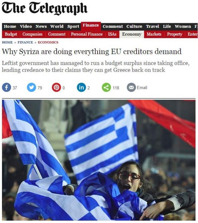 Με τίτλο «Γιατί ο ΣΥΡΙΖΑ κάνει ό,τι του ζητούν οι πιστωτές» η βρετανική εφημερίδα αποτυπώνει τα εξής: