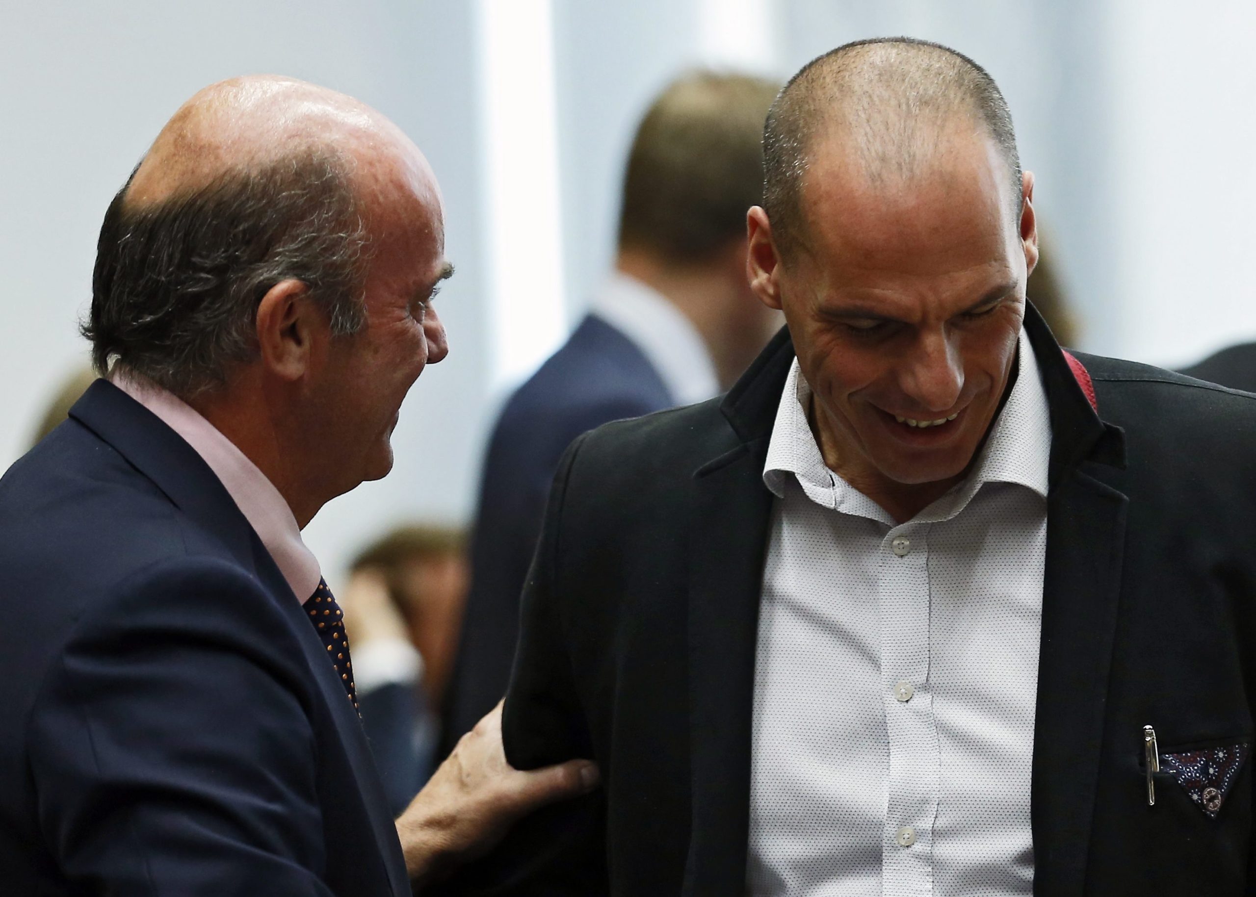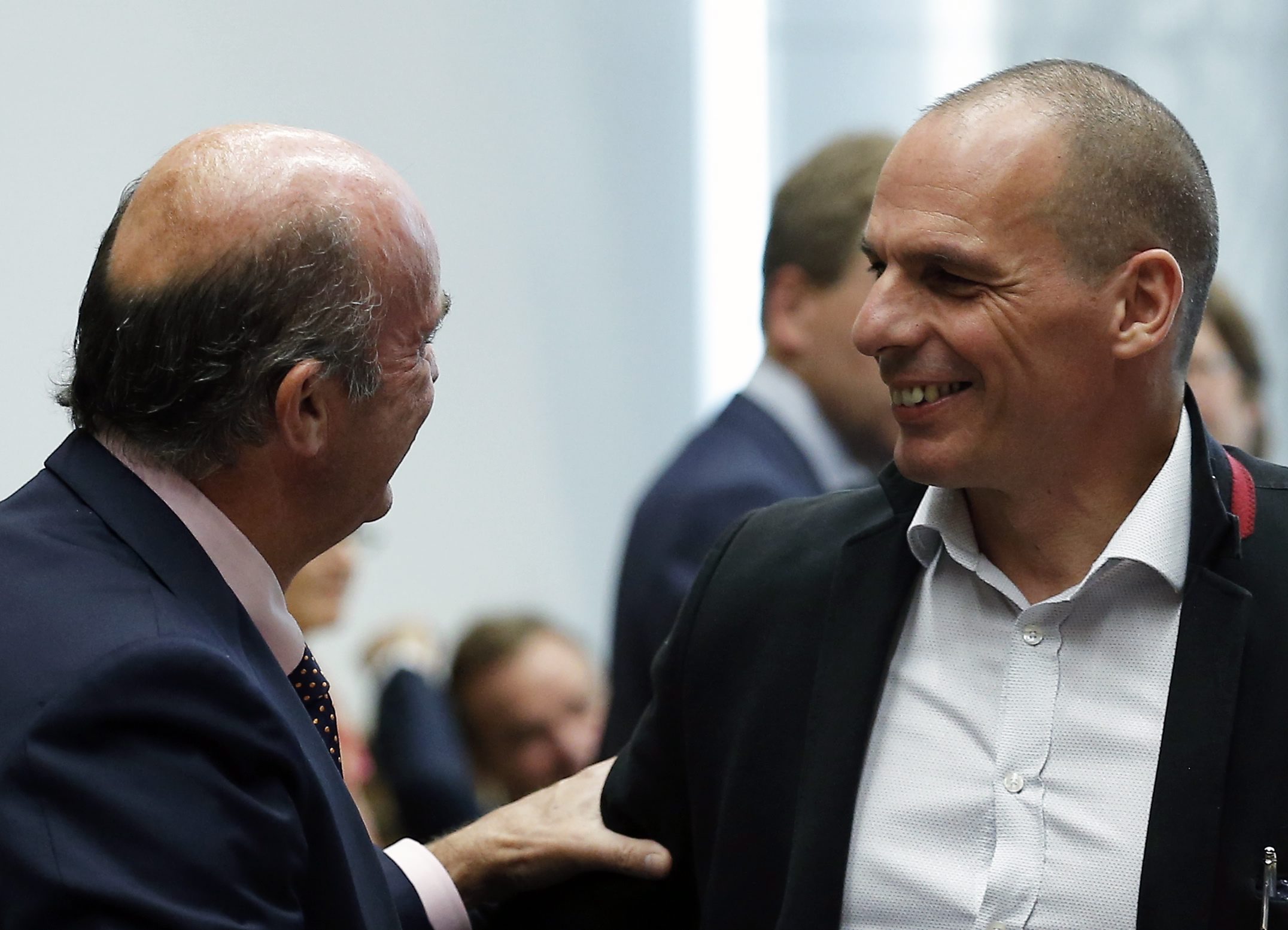 Με τον Ισπανό ομόλογό του Λουίς Ντε Γκίντος συνομίλησε ο υπουργός Οικονομικών, Γιάνης Βαρουφάκης πριν από την έναρξη του Eurogroup.