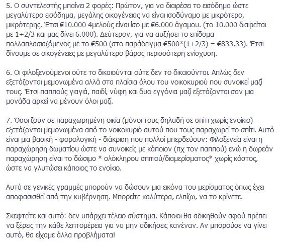 6. Οι φιλοξενούμενοι ούτε το δικαιούνται ούτε δεν το δικαιούνται. Απλώς δεν εξετάζονται μεμονωμένα αλλά στα πλαίσια όλου του νοικοκυριού που συνοικεί μαζί τους. Έτσι παππούς γιαγιά, παιδί, νύφη και δυο εγγόνια μαζί εξετάζονται σαν μια μονάδα αρκεί να μένουν όλοι μαζί.