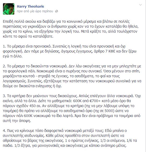 Διαβάστε την ανάρτηση του κ. Θεοχάρη στο facebook: