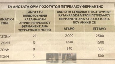 -Να ενισχυθούν με ακόμη μεγαλύτερα ποσά επιδόματος κυρίως τα νοικοκυριά με χαμηλά εισοδήματα και μικρής αξίας ακίνητη περιουσία τα οποία διαμένουν μόνιμα σε περιοχές όπου -λόγω των πολύ χαμηλών θερμοκρασιών που επικρατούν ήδη από το φθινόπωρο – η προμήθεια και η κατανάλωση πετρελαίου θέρμανσης ξεκινούν πολύ πιο νωρίς απ’ ότι στη υπόλοιπη χώρα. Στο πλαίσιο αυτό εξετάζεται η αύξηση του βασικού ποσού του επιδόματος κατά 20% ή 25% από 25% από 0,16 ας 0,192 ή ο,20 ευρώ ανά αγοραζόμενο λίτρο πετρελαίου θέρμανσης και η θέσπιση πρόσθετων κριτηρίων ώστε το επίδομα να δίδεται πιο στοχευμένα σε νοικοκυριά με πραγματική οικονομική αδυναμία κάλυψης της δαπάνης και με αυξημένες ανάγκες για θέρμανση.