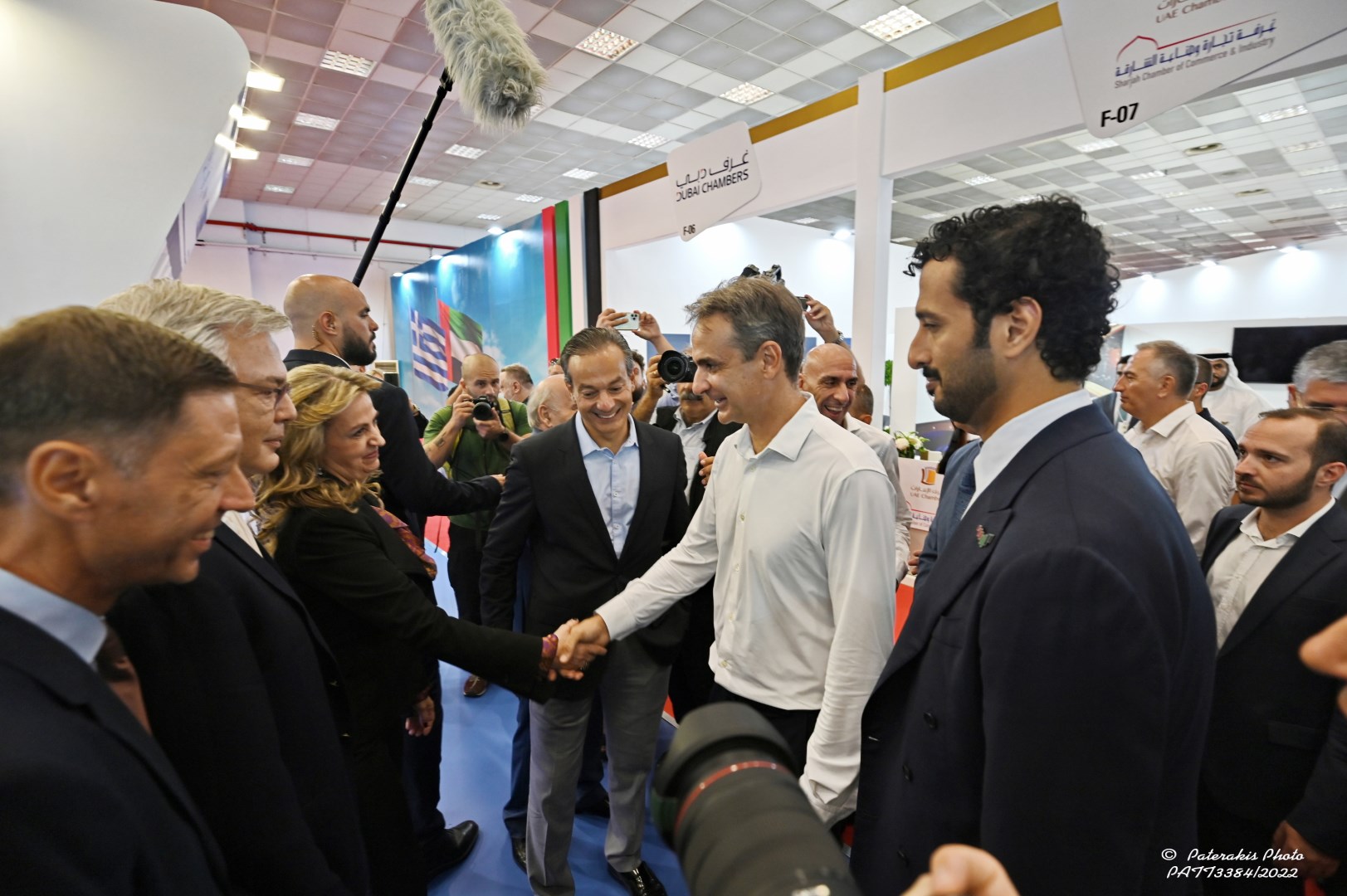 Τον Πρωθυπουργό, ο οποίος συνοδευόταν από τον Υπουργό Οικονομίας των HAE κ. Abdullah bin Touq Al Marri, τον Υπουργό Ανάπτυξης και Επενδύσεων κ. Άδωνι Γεωργιάδη και τον Υφυπουργό παρά τω Πρωθυπουργώ κ. Γιάννη Μπρατάκο, υποδέχτηκε η Προεδρεύουσα και Α΄ Αντιπρόεδρος του ΕΒΕΑ κα. Σοφία Κουνενάκη Εφραίμογλου και τα μέλη της Διοικητικής Επιτροπής του ΕΒΕΑ, κ.κ. Καφούνης Σταύρος Β΄ Αντιπρόεδρος, Σιαμίδης Μιχάλης Γ΄ Αντιπρόεδρος, Μωραΐτης Μπάμπης Γενικός Γραμματέας, Βασιλείου Νίκος Μέλος ΔΕ, Υπεύθυνος Διεθνών Σχέσεων.