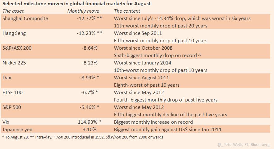Τα χρηματιστήρια διεθνώς είχαν απώλειες που θύμιζαν το κραχ του 2007 τον Αύγουστο, όταν έσκαγε η «φούσκα» στα subprime, τα «δάνεια των φτωχών» όπως τα έλεγαν στις ΗΠΑ, για να ακολουθήσει το “ντόμινο” που προκάλεσε η Lehman Brothers το φθινόπωρο του 2008.