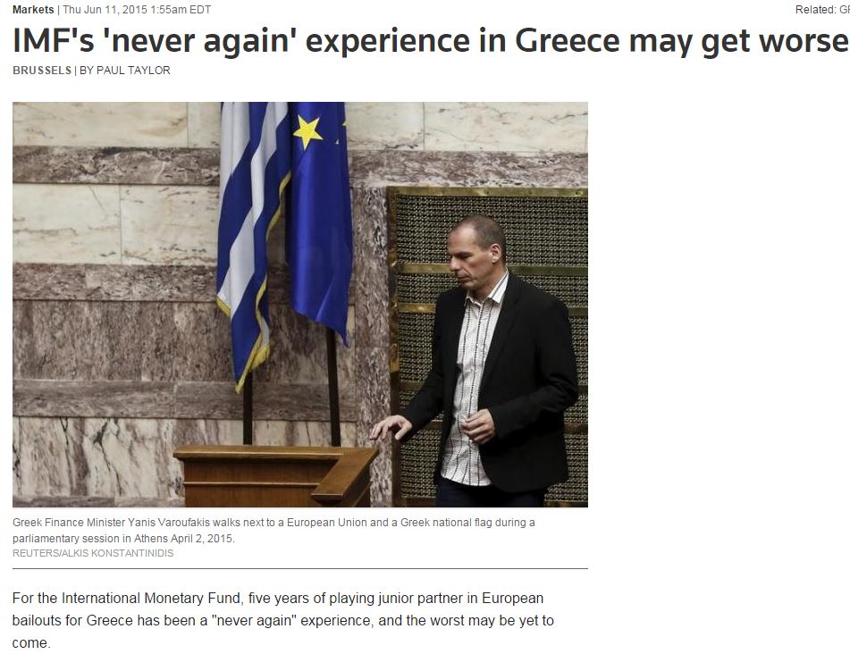 Ένα πρώην μέλος του ΔΝΤ και τώρα σύμβουλος οικονομικών, αναφέρει: «Ένα από τα σημαντικότερα μαθήματα του ΔΝΤ από το ελληνικό πρόγραμμα είναι ότι ένας πολυμερής οργανισμός δεν θα πρέπει να θεσμοθετεί τα ειδικά συμφέροντα ενός υποσυνόλου των μελών του. Το ενδιαφέρον του ΔΝΤ δεν είναι κατ’ ανάγκην ευθυγραμμισμένο με αυτά της ΕΕ και της ΕΚΤ».