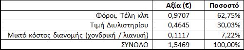 Υπενθυμίζουμε οι τιμές λιανικής καυσίμων στην Ελλάδα, διαμορφώνονται από τους παρακάτω συντελεστές (παράδειγμα για βενζίνη 95 στις 1/12/14)».