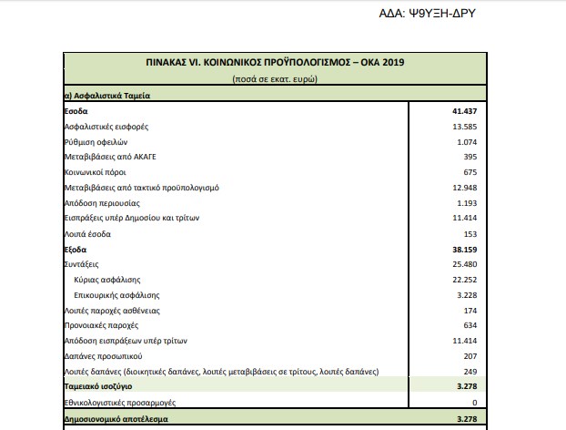 Οι δαπάνες των ΟΤΑ προβλέπεται να διαμορφωθούν στα 6,8 δισ. ευρώ, οι δαπάνες του ΕΟΠΥΥ στα 4,8 δισ. ευρώ και οι δαπάνες των νοσοκομείων τοποθετούνται στα 3,1 δισ. ευρώ.