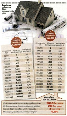 -Στο υπουργείο Οικονομικών επιθυμούν ατομική περιουσία της τάξεως των 300.000-400.000 ευρώ να επιβαρύνεται με περίπου 900 ευρώ κάθε χρόνο.