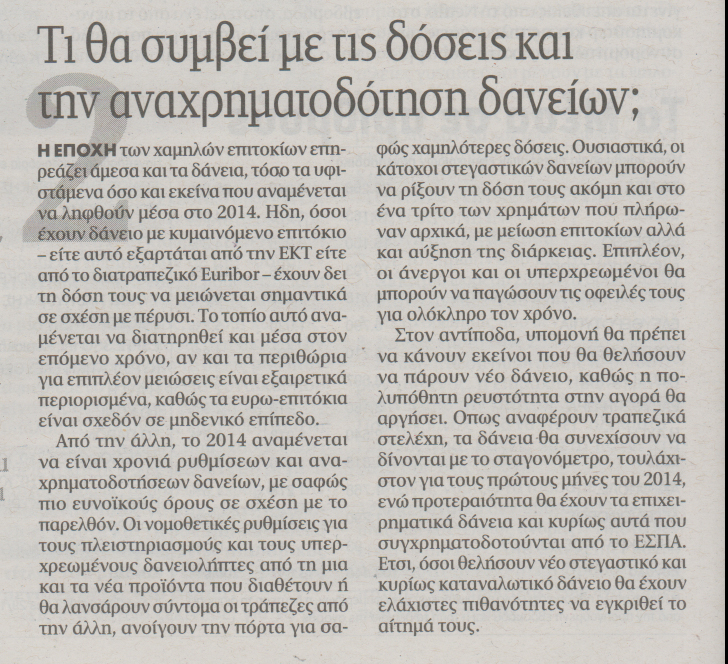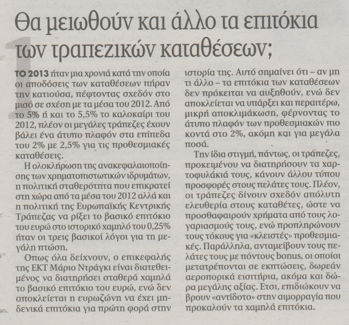 Τι θα φέρει το 2014 για καταθέτες, επενδυτές και δανειολήπτες
