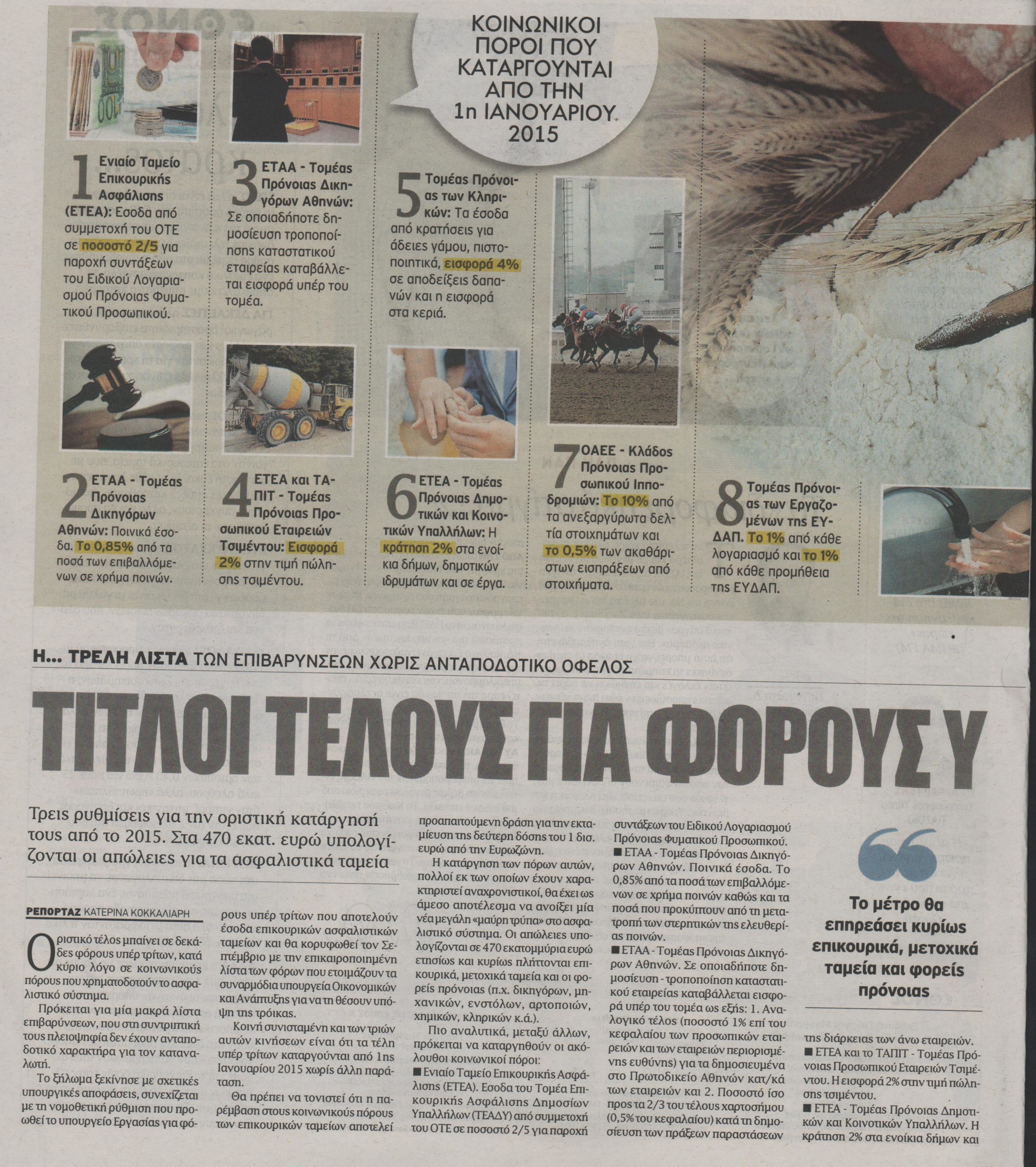 Οριστικό τέλος μπαίνει σε δεκάδες φόρους υπέρ τρίτων, κατά κύριο λόγο σε κοινωνικούς πόρους που χρηματοδοτούν το ασφαλιστικό σύστημα.