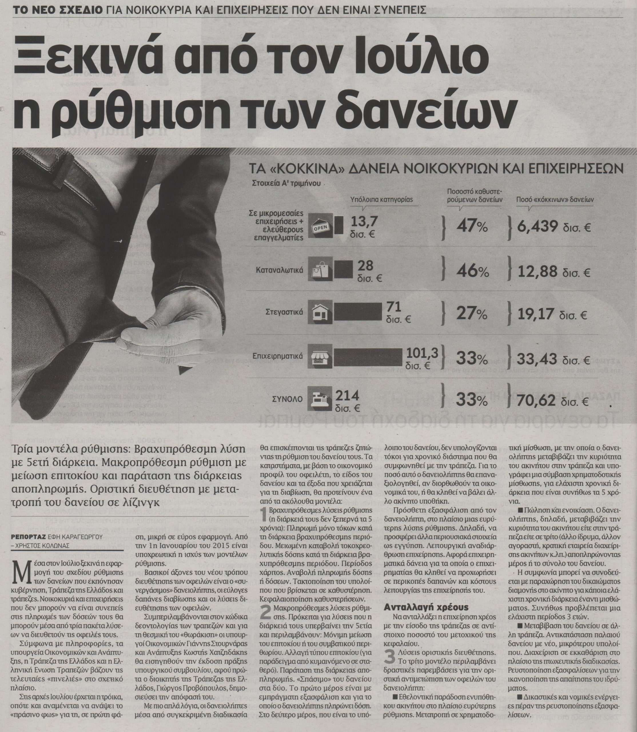 Μέσα στον Ιούλιο ξεκινά η εφαρμογή του σχεδίου ρύθμισης των δανείων που εκπόνησαν κυβέρνηση, Τράπεζα της Ελλάδος και τράπεζες. Νοικοκυριά και επιχειρήσεις που δεν μπορούν να είναι συνεπείς στις πληρωμές των δόσεών τους θα μπορούν μέσα από τρία πακέτα λύσεων να διευθετούν τις οφειλές τους.