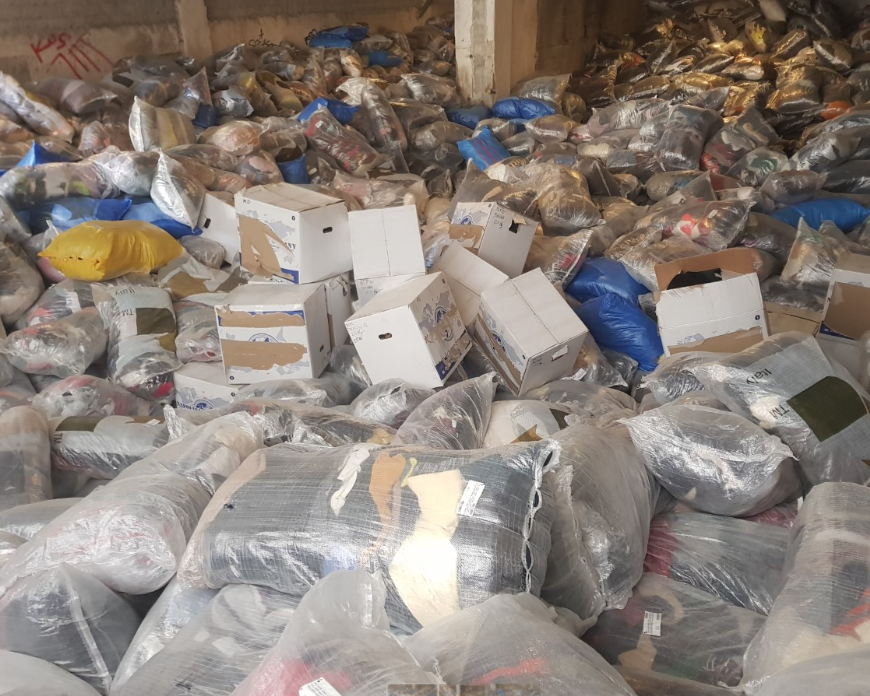- 49 τόνοι (περίπου) ενδυμάτων που βρίσκονταν σε 2.440 σάκους (σε αποθηκευτικό χώρο)
