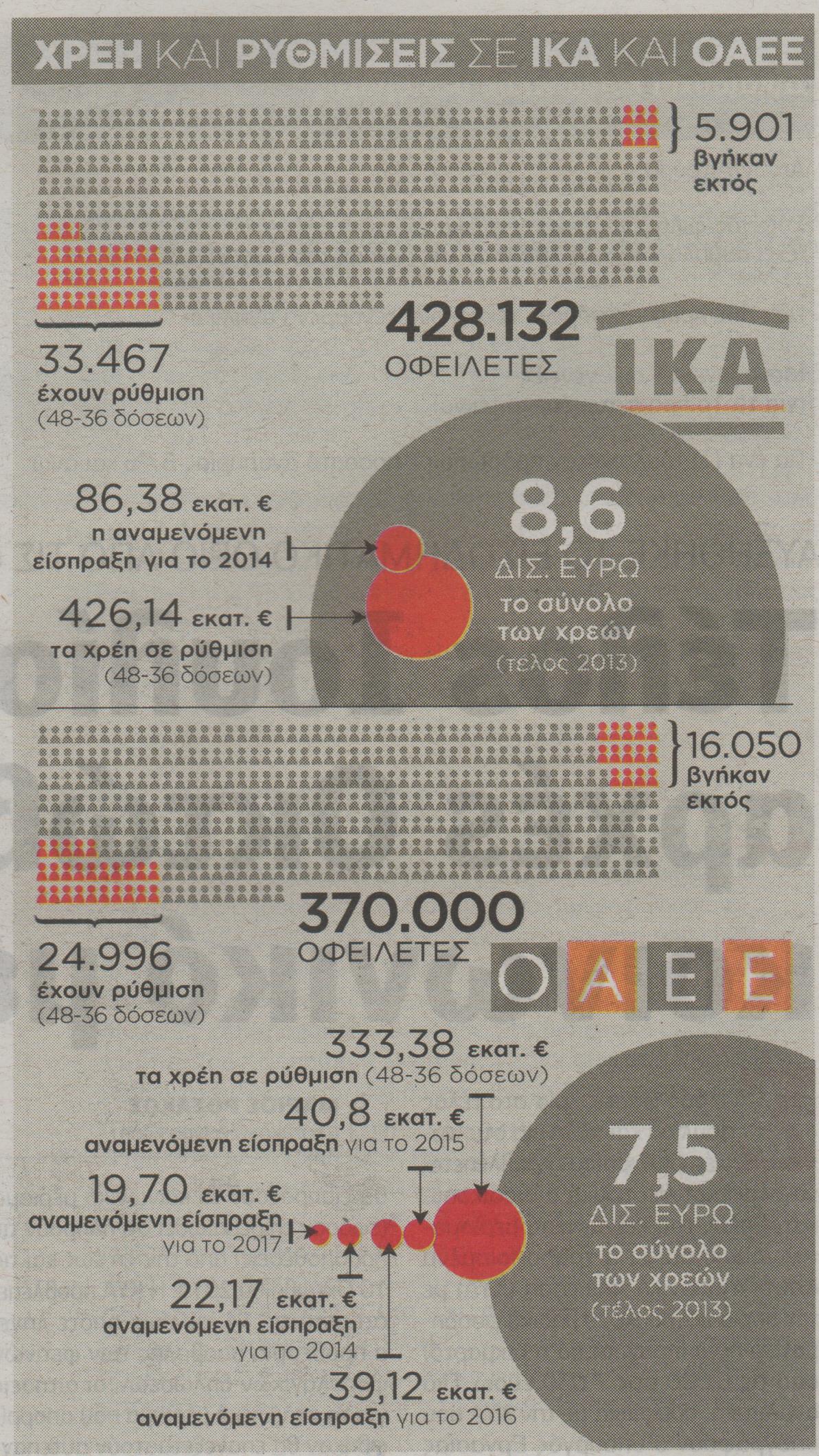 Όσοι δεν είναι σε ρύθμιση θα έχουν την ευκαιρία να τακτοποιήσουν τις υποχρεώσεις τους με αίτηση εντός δύο ή τριών μηνών (Αύγουστο- Σεπτέμβριο ή και Οκτώβριο). Όσοι είχαν ρύθμιση και έμειναν εκτός θα μπορούν να ενταχθούν στις 72 δόσεις για το υπόλοιπο μέρος της οφειλής.