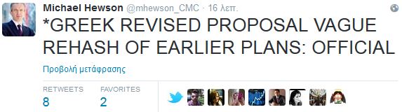 Άρχισαν τα όργανα στο twitter μετά την κατάθεση αντιπρότασης της ελληνικής πλευράς στους δανειστές με πρώτον από όλους τον Πίτερ Σπίγκελ των Financial Times.