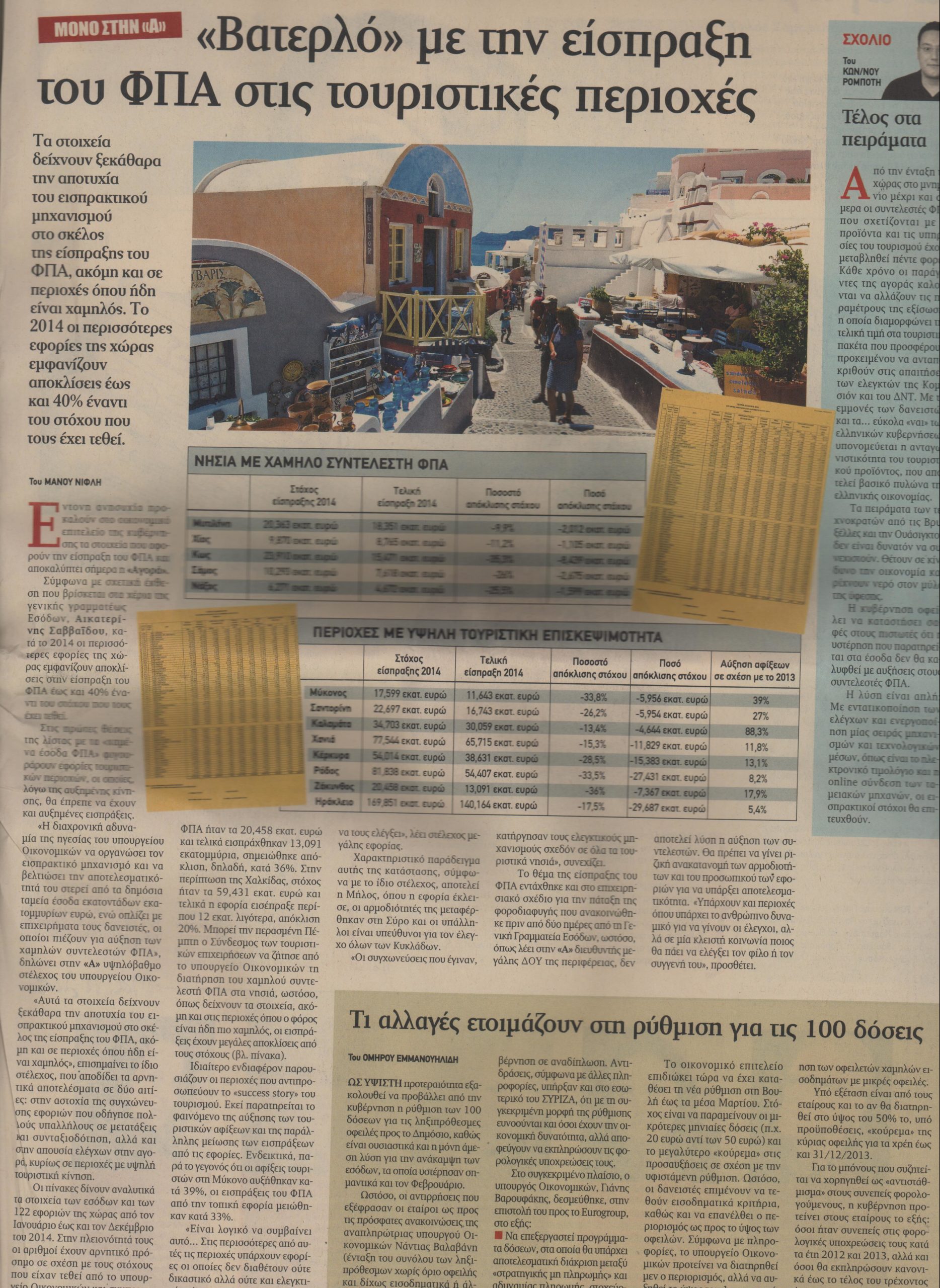 Επιβεβαιώνει το υπουργείο Οικονομικών το ρεπορτάζ της εφημερίδας “Αγορά“, που στο φύλλο της 28ης Φεβρουαρίου είχε αποκαλύψει το “βατερλό” με την είσπραξη του ΦΠΑ στις τουριστικές περιοχές.