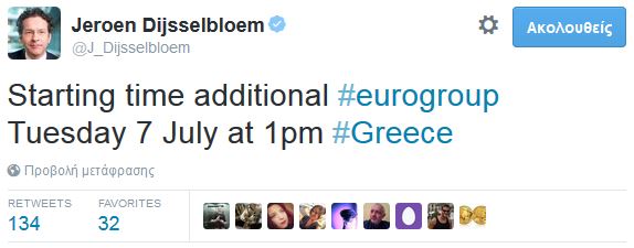 Την Τρίτη 2 μμ θα γίνει το νέο έκτακτο Eurogroup ανακοίνωσε ο επικεφαλής της ευρω-ομάδας των υπ. Οικονομικών Γερούν Ντάισελμπλουμ.