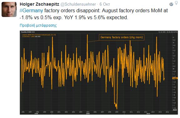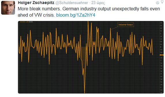 Απανωτά δυσμενή οικονομικά στοιχεία δημοσιεύονται στη Γερμανία τον Αύγουστο προκαλώντας ρίγη σε ολόκληρη της ευρωζώνη παρά την απομάκρυνση του ρίσκου… Grexit, καθώς το εξαγωγικό «μοντέλο Μέρκελ» δείχνει σημάδια αδυναμίας στη σκιά της κρίσης made in China και του σκανδάλου της Volkswagen, της μεγαλύτερης αυτοκινητοβιομηχανίας διεθνώς.