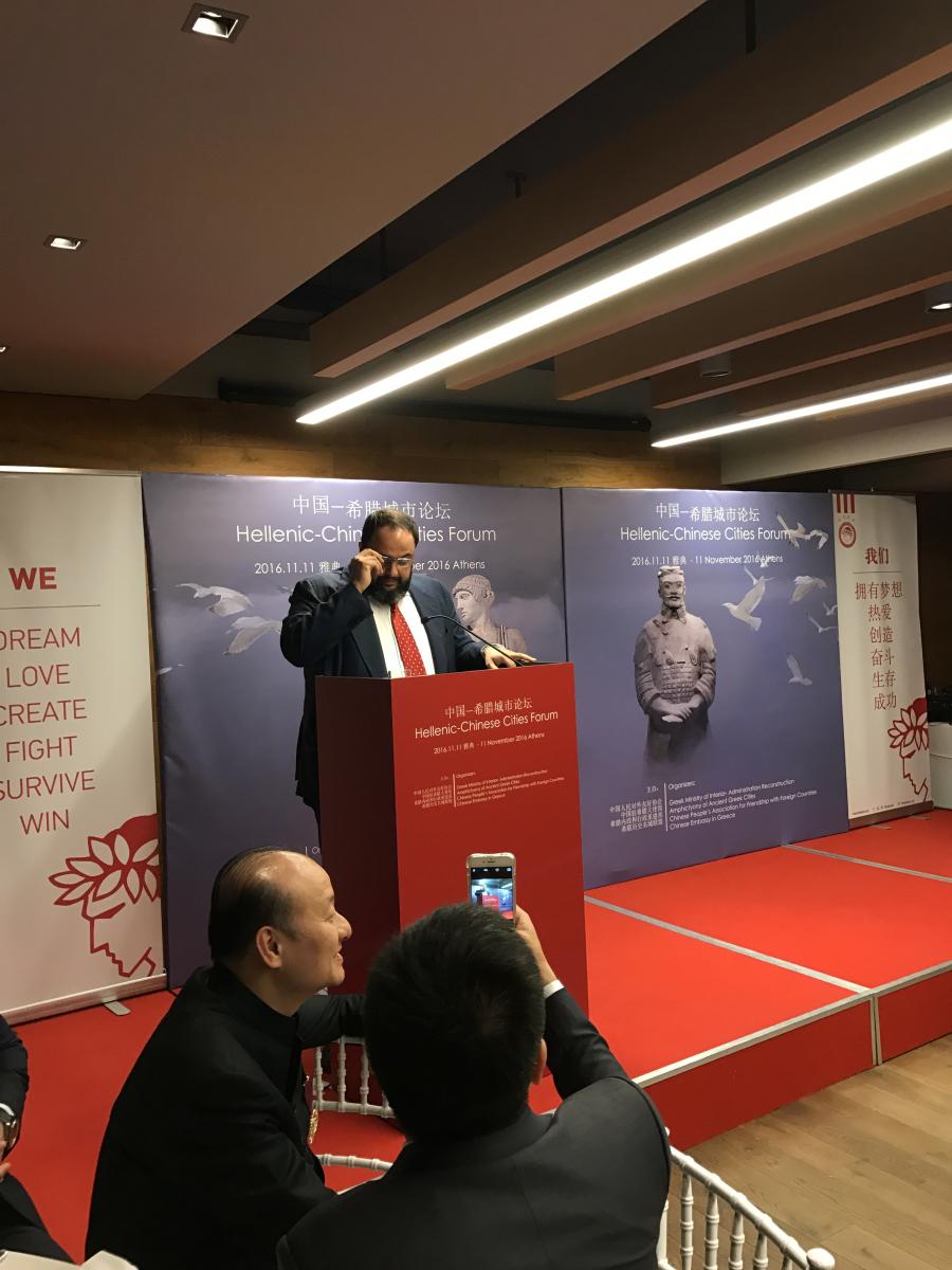 Πολλοί από εσάς έχετε κάνει ένα μεγάλο ταξίδι για να βρίσκεστε μαζί μας σήμερα. Είναι μεγάλη χαρά και τιμή για μάς που σας φιλοξενούμε σήμερα εδώ. Σπουδαία πράγματα συμβαίνουν όταν συγκεντρώνονται μαζί σπουδαία μυαλά. Και είμαστε εδώ για να γιορτάσουμε το κλείσιμο των εργασιών του 1ου Φόρουμ Ελληνικών και Κινεζικών Δήμων.