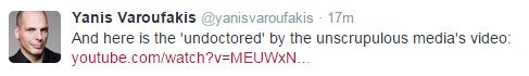 O υπουργός Οικονομικός έγραψε στη συνέχεια σε νέο tweet: “Και αυτό είναι το ‘αμοντάριστο’ βίντεο των αδίστακτων μέσων”, παραθέτοντας το επίμαχο βίντεο.