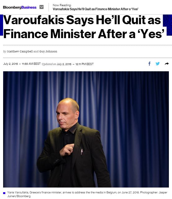 Βαρουφάκης στο bloomberg: Αν βγει «ναι» θα παραιτηθώ
