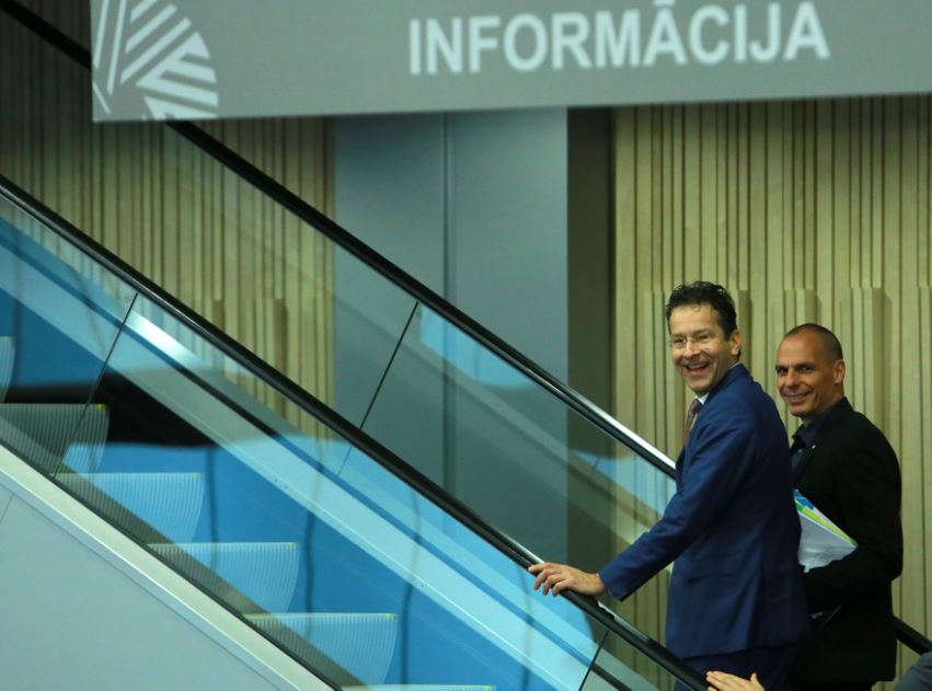 Πολλά έχουν ακουστεί για τη σχέση του Γιάνη Βαρουφάκη με τον επικεφαλής του Eurogroup, Γερούν Ντάισελμπλουμ, μετά από την πρώτη συνάντηση τους στην Αθήνα. Ωστόσο όπως φαίνεται και στη φωτογραφία, σήμερα οι δύο τους ήταν ιδιαίτερα χαμογελαστοί την ώρα που ανέβαιναν τις σκάλες παρέα για να μπουν στη συνεδρίαση του άτυπου Eurogroup που έγινε στη Ρίγα της Λετονίας.