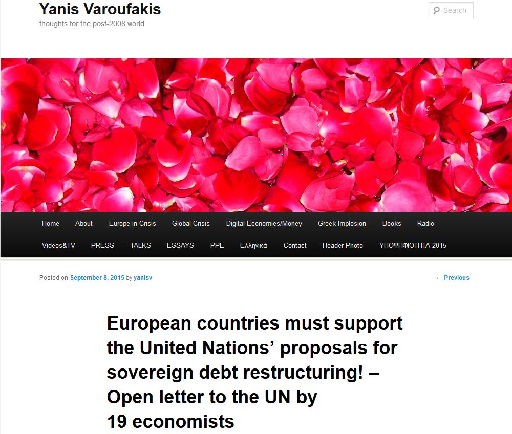 Ανοιχτή επιστολή υπογράφει ο Γιάννης Βαρουφάκης με 16 ακόμα οικονομολόγους ζητώντας από την Ευρώπη να υποστηρίξει την Ελλάδα στο θέμα της μείωσης του χρέους στη σύνοδο του ΟΗΕ την Πέμπτη.