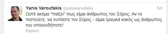 “Ωστέ ακόμα “παίζει” πως είμαι άνθρωπος του Σόρος; Αν το πιστεύετε, να λυπάστε τον Σόρος – είμαι τραγικά κακός ως άνθρωπος του οποιουδήποτε! “, έγραψε στο Twitter ο οικονομολόγος.